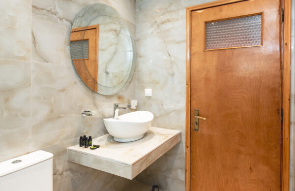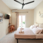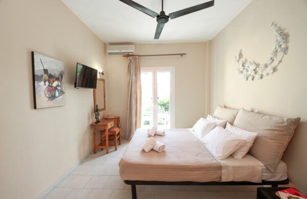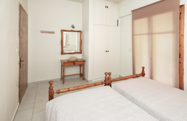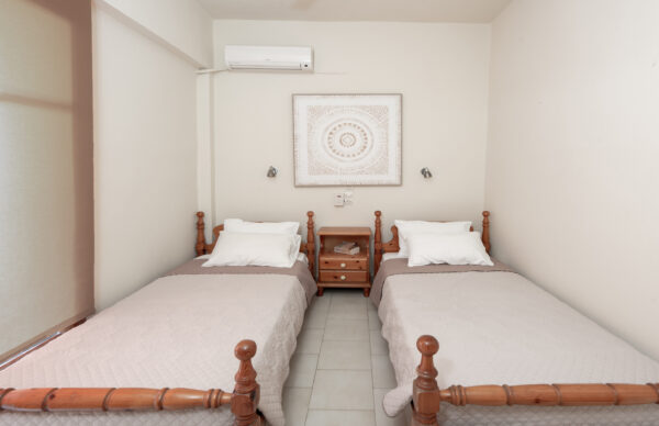 It consists of two rooms one with a double bed and the other with two twin beds both with access to balcony.