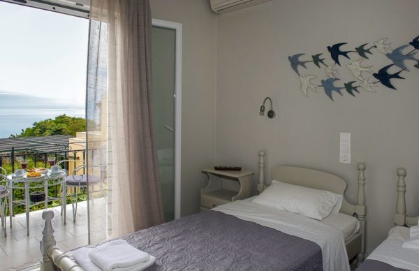 - 2 bedrooms with sea view (one bedroom has one double bed and the other two single beds), kitchen, toilet, towels and bed linens